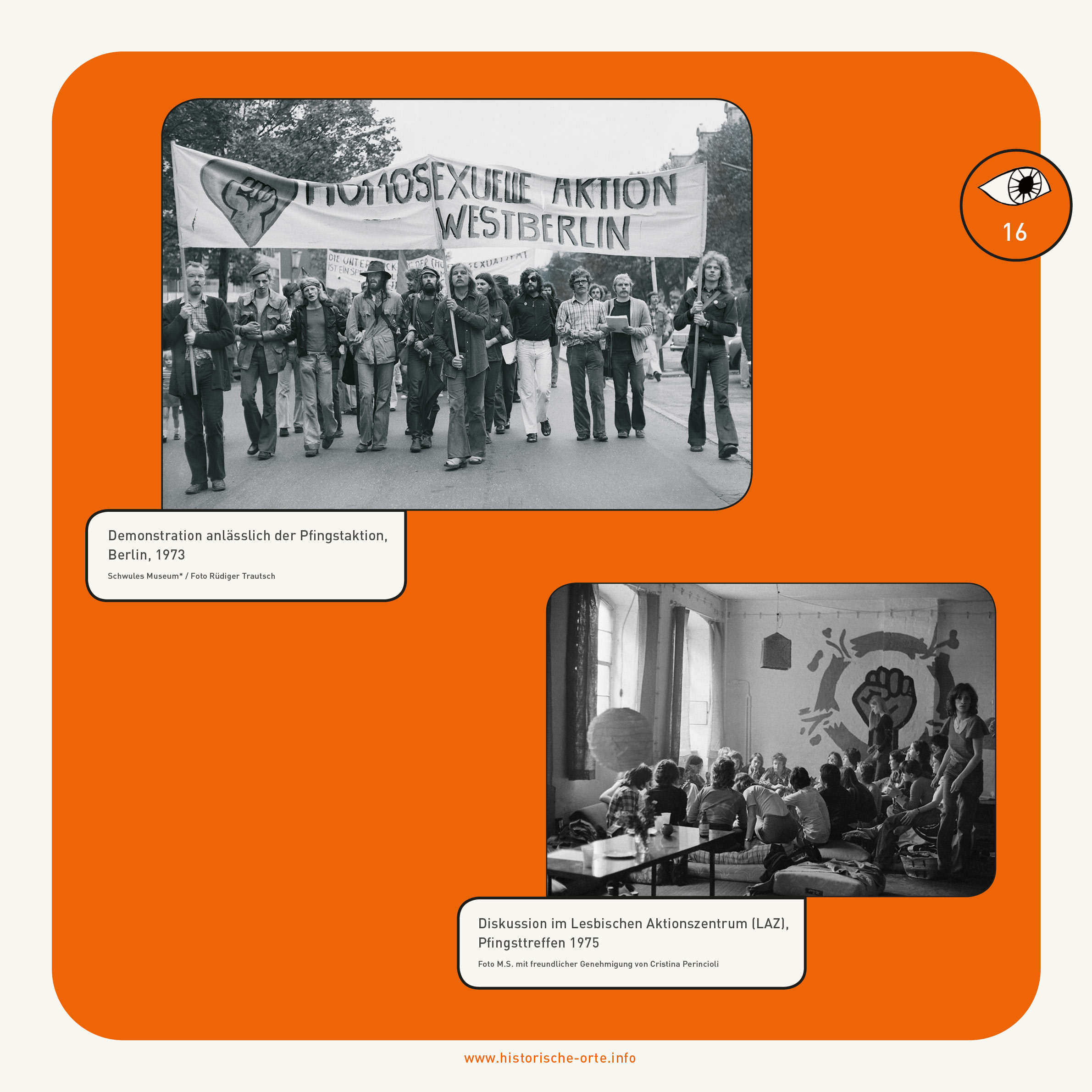 Im Hofgebäude Kulmer Straße 20a hatte ab 1974 die »Homosexuelle Aktion Westberlin« HAW ihren Sitz: Schwule und Lesben, die sich gegen Kriminalisierung und Diskriminierung wehrten. Gegründet wurde sie 1971 nach einer Aufführung des Films »Nicht der Homosexuelle ist pervers, sondern die Situation, in der er lebt« von Rosa von Praunheim. Im Januar 1975 löste sich die HAW-Frauengruppe ab und bezog als »Lesbisches Aktionszentrum« LAZ eigene Räume in der II. Etage. Aus der HAW ging 1977 das »Schwule Zentrum« SchwuZ hervor, das 1979 den ersten »Christopher Street Day« in Berlin organisierte.